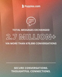 In 2025, our community sent over 2.7 million safe and secure messages, sparking more than 670,000 conversations between breeders and puppy seekers. Puppies.com continues to make connecting easier and safer for everyone, ensuring a smooth journey toward finding the perfect puppy match.