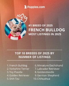 French Bulldogs took the crown as the #1 breed of 2025! Known for their compact size, playful personalities, and irresistible charm, it’s no surprise they captured so many hearts.