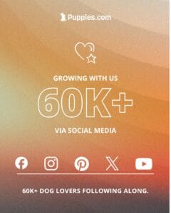 More than 60,000 dog lovers are part of our growing Puppies.com community. Thank you for sharing the journey, the joy, and the puppy love with us through our social channels and more. We’re better and stronger together.
